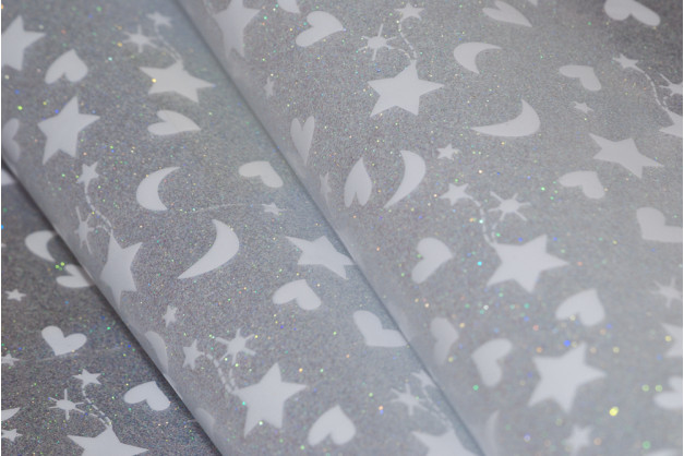 Moon and Star Printing PVC Glitter Film